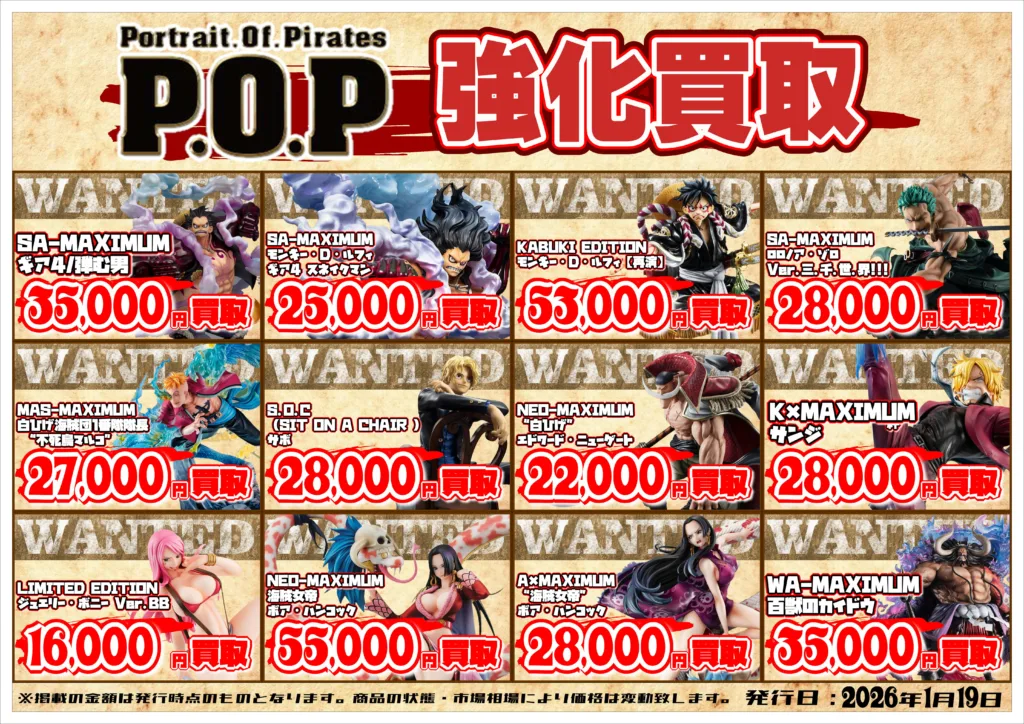 Portrait of Pirates (P.0.P) 買取一覧(抜粋) 2026年1月時点