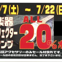 【注目】7月7日(土)~7/22日(日)は楽器・エフェクター・アンプの20%OFFセール開催中です!